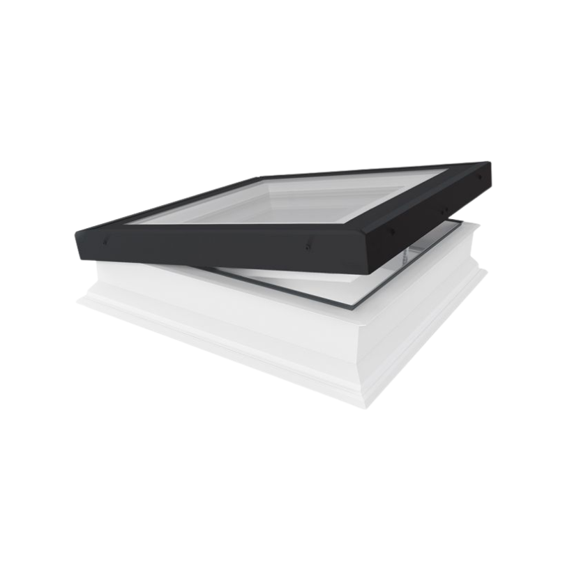 De Fakro DMG P2 60×60 is voorzien van een vlakke glasplaat die strak is ingeklemd in een zwart aluminium profiel (RAL9005). Dit zorgt voor een moderne en strakke uitstraling.