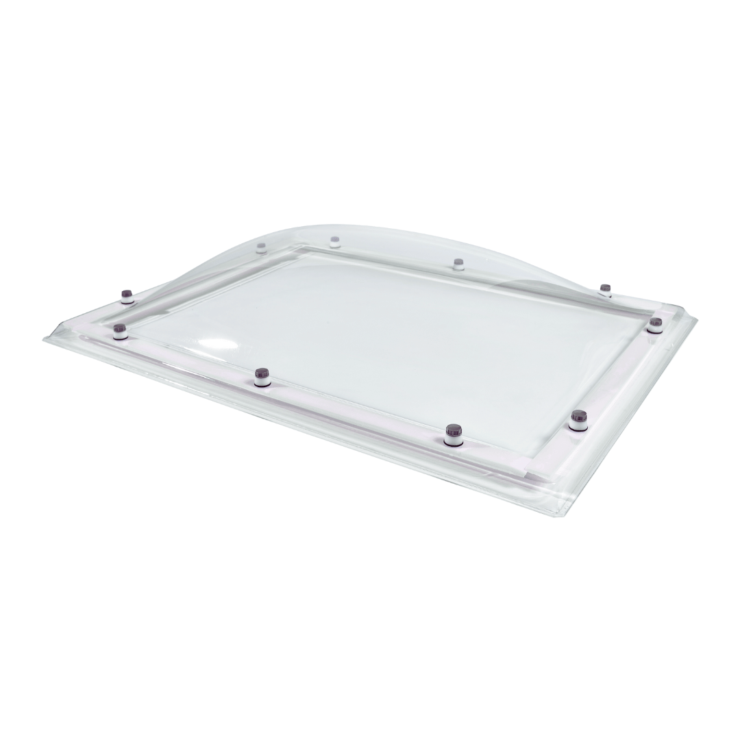Een enkelwandige polycarbonaat lichtkoepel in glasheldere uitvoering met de afmetingen van 40cm x 70cm.