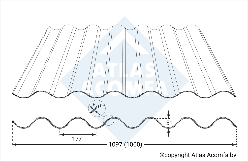 5. De enkelwandige golfplaten zijn verkrijgbaar in verschillende golftypen. De driewandige golfplaten alleen in het type 177/51. Alle golfplaten van 177/51 sluiten uitstekend aan op bestaande vezelcementdaken.